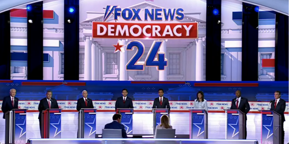 Dylan Wells, Washington Post: “Asked to raise their hands to indicate if they would not support the increase of war funding to Ukraine, Ramaswamy was the first to raise his hand, followed by DeSantis.”