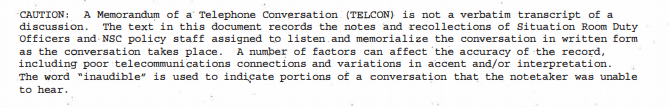 ESTO NO ES UNA TRANSCRIPCIÓN: Dice desde el principio que esto es un memorándum y no una transcripción exacta de la discusión. El Congreso aún necesita ver toda la queja oficial sin redacciones.