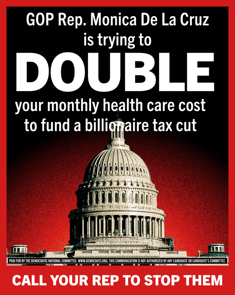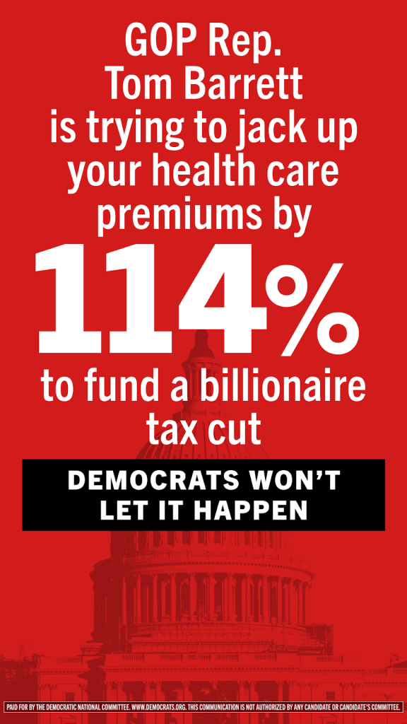 Today, the DNC is launching an ad campaign targeting vulnerable Republicans in Texas, Pennsylvania, New Jersey, Virginia, and Michigan to hold Republicans accountable for trying to jack up health care costs in order to give massive tax handouts to the ultra-wealthy.